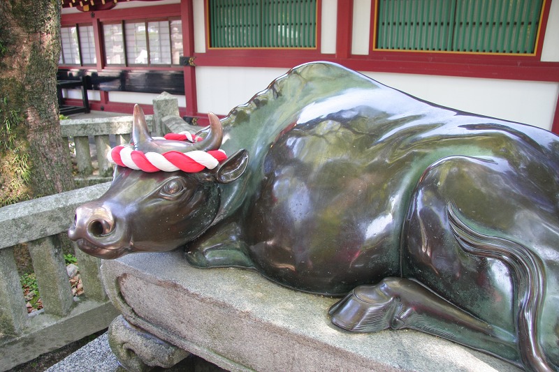 廟的入口處有一隻銅牛,