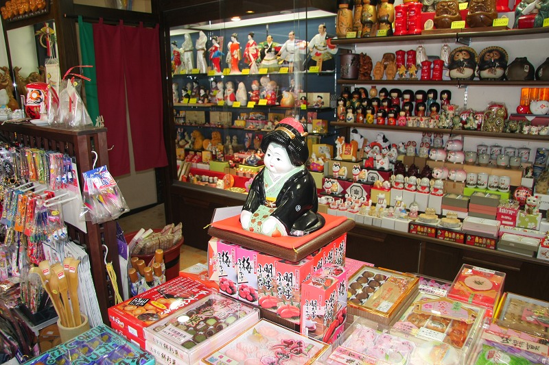 商店街上有很多日本傳統藝品,